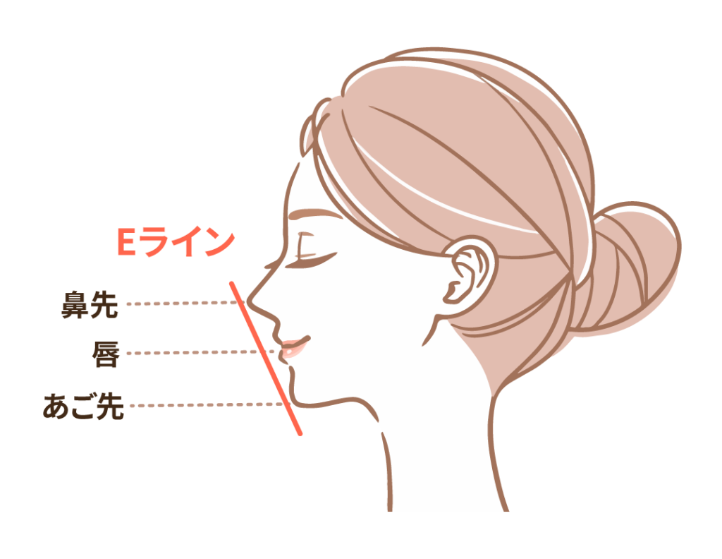 欧米では最も理想的な横顔はEラインよりも上唇が4㎜程度、下唇が2㎜程度内側にある状態だと言われています。