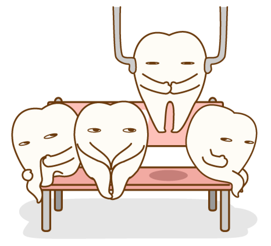 イスを歯が並ぶアゴ、並んでいる歯を人に例えます。
