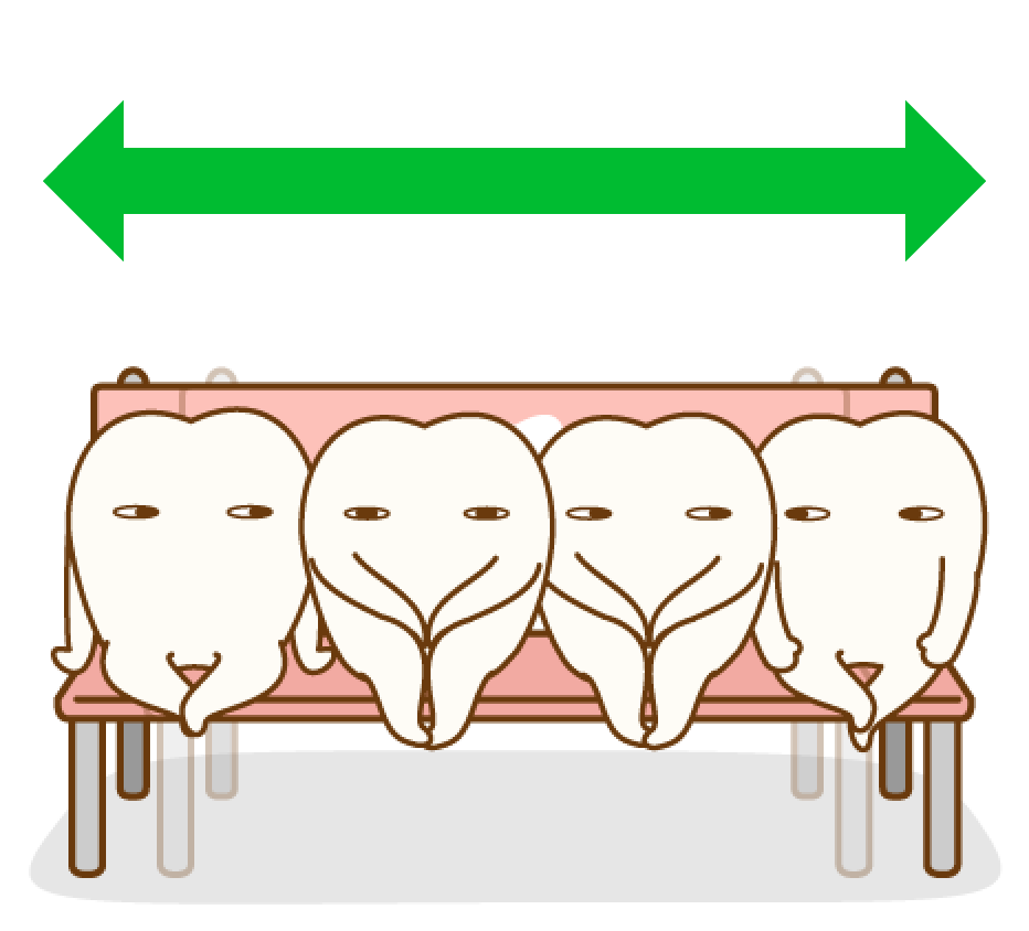 - 歯が並ぶアゴに対して、並んでいる歯の大きさの合計が大きい